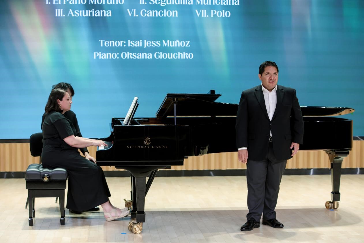 当伊赛·杰斯·穆尼奥斯院长的歌声响起,瞬间震惊现场的所有观众,他与钢琴家奥克萨娜·格鲁奇科联袂演绎的曼努埃尔·德法拉《七首西班牙流行歌曲》选段,将西班牙民族音乐的热情与诗意充分展现出来,多元与异域的艺术魅力令人惊叹;他还以法语演唱了德彪西的《绿色》、《他在我心中哭泣》,带领观众一起探索印象主义音乐的细腻情感;最后献上的加泰罗尼亚语爱德华·托尔德拉《拉罗莎阿尔斯拉维斯》吟唱,其跨越语言的情感共鸣,令人回味无穷。他以光芒四射的歌声,让现场观众得以感受世界级男高音歌唱家的非凡魅力。