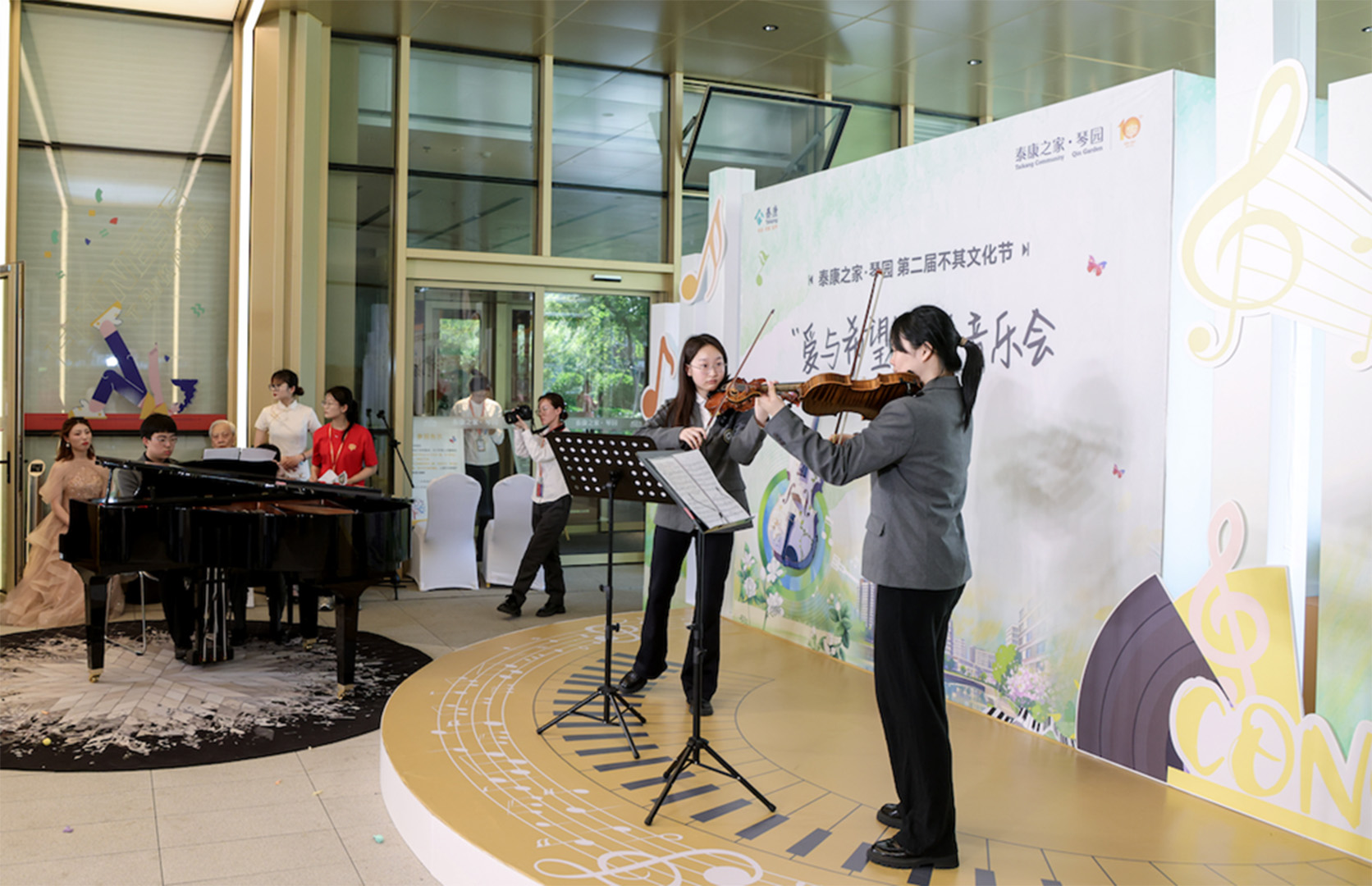 演出当日,泰康之家·琴园养老社区的“琴韵厅”暨“代际艺术共生实践基地”也正式揭牌。该养老社区不仅为老人们提供了非常舒适、贴心和人性化的起居环境,还非常注重为他们提供优质的精神文化,以及通过音乐、艺术进行康养疗愈。在青岛耶胡迪梅纽因学校的协助下,这里专门打造的“琴韵厅”正是为老人们提供文化与精神颐养的空间,而“代际艺术共生实践基地”的揭牌,也预示着这里将长期成为青岛耶胡迪梅纽因学校同学们公益活动的实践基地,将定期举办音乐工作坊、跨代际音乐沙龙等活动。