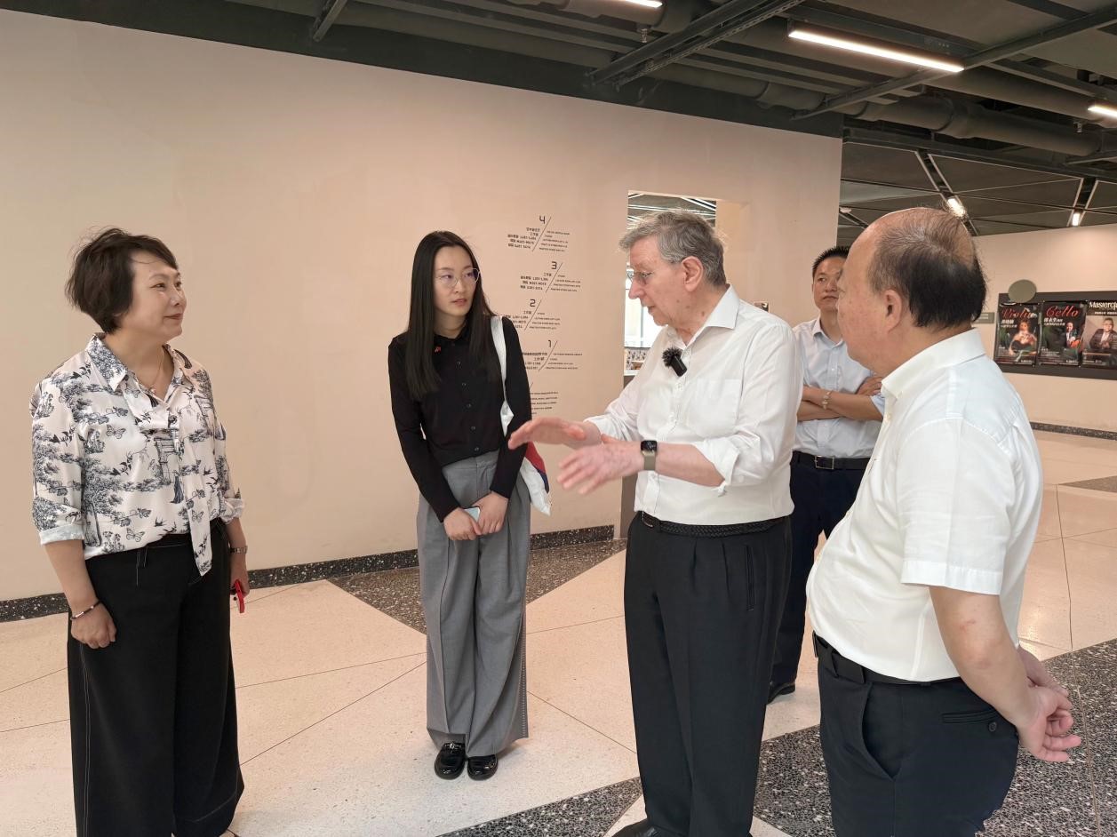 艾格博士仔细参观了声学设计琴房、梅纽因厅及各类型教室,在标志性空间“星空之城”驻足感受艺术氛围,对学校融合自然生态与顶尖艺术教育的环境深表钦佩。他称赞学校的教学设施“高端、专业、富有设计感,完全具备国际顶尖音乐院校水准”。